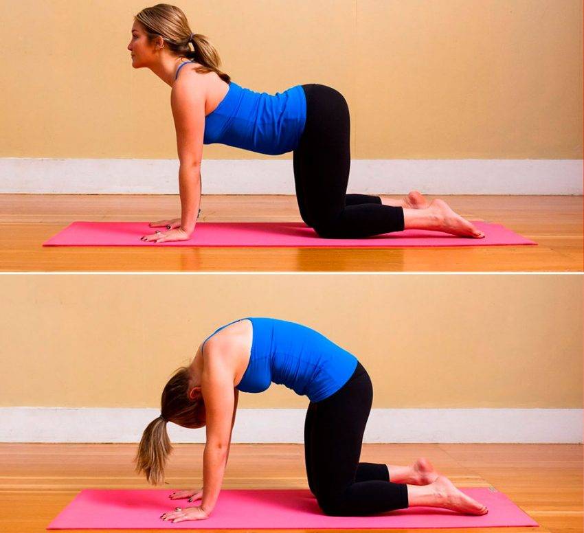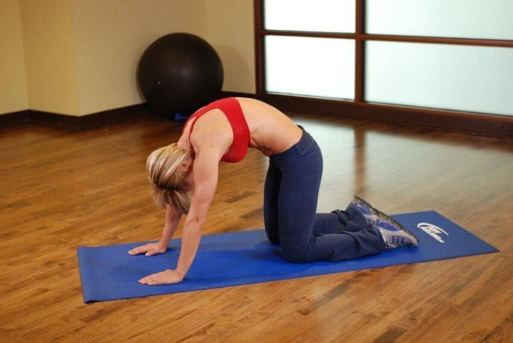 - Раскладываем гимнастический коврик, становимся в позу «на четвереньках».