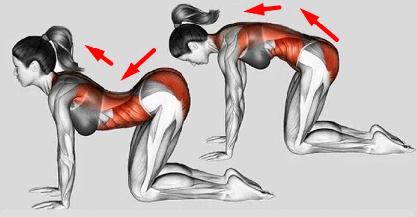 Какие мышцы затрагиваются при выполнении кошки?