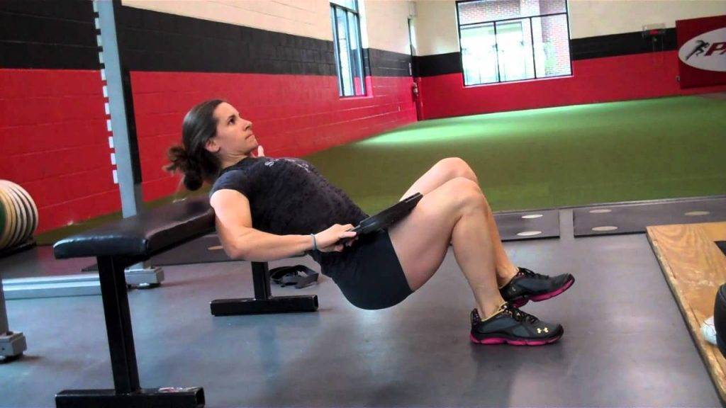 Выполнять упражнение можно как с собственным весом, со штангой на плечах, так и с гантелями, бутылками воды. Скамья должна находиться позади вас на расстоянии большого шага. Если увеличить расстояние, то работать будут уже бёдра, а не ягодицы.