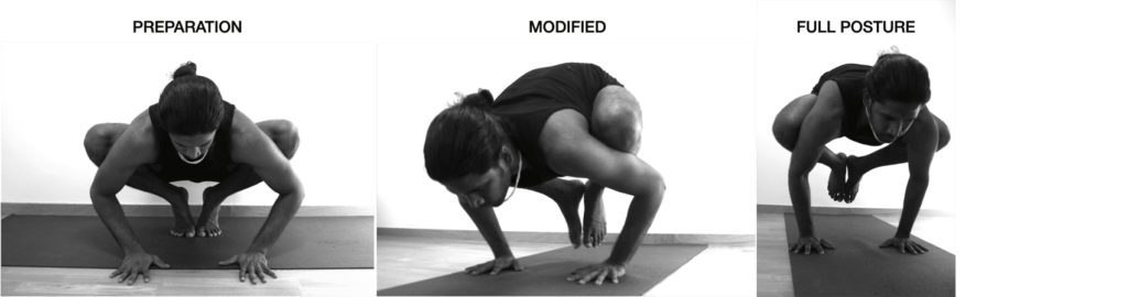 Выполнение этих асан поможет научиться двум основным принципам, которые помогут в освоении бакасаны — умение направлять живот вверх, округляя при этом позвоночник, и смещать центр грудины от пупка.
