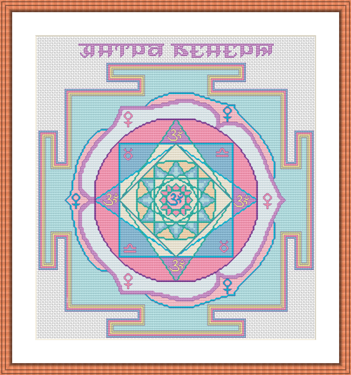 Сама янтра очень красива и красочна. В ней соединяется целый калейдоскоп цвета: сочетание оливкового и жёлтого, зелёного и белого. Цветок лотоса с восемью лепестками символизирует пять элементов и три внутренних органа – разум, понимание и самосознание. Лепестки имеют нежно-розовый окрас. Шестиконечная звезда в центре олицетворяет саму богиню и её тёмную сторону.