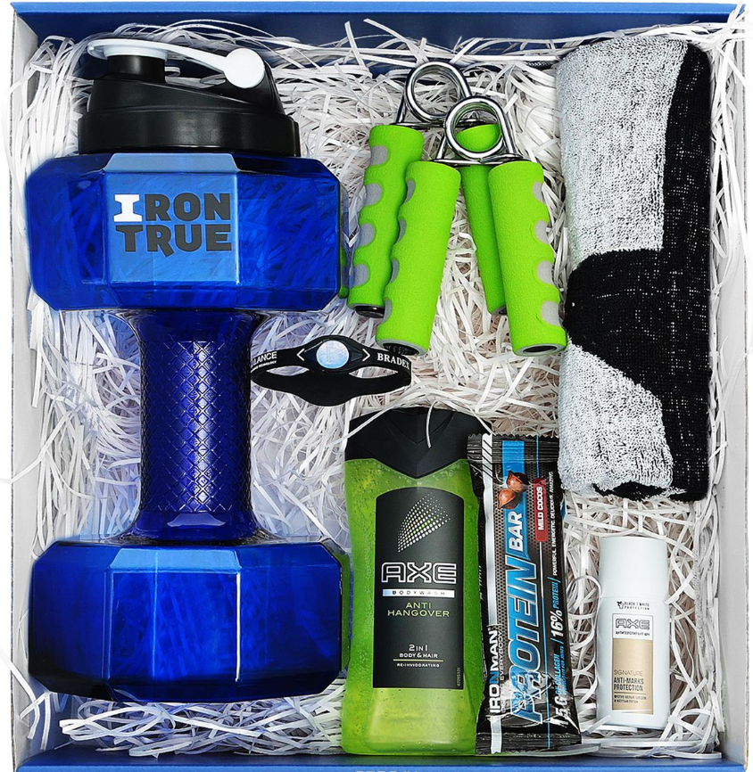 Предположим, Ваш любимый увлечен тренажерным залом. В этом случае комплект расходных материалов и элементов тренировочного процесса, таких как бутылка для воды, полотенце, спортивный браслет, эспандер для кистей рук, шампунь, гель для душа, дезодорант, будет очень полезным подарком и крайне приятным знаком внимания и поддержки в его занятиях