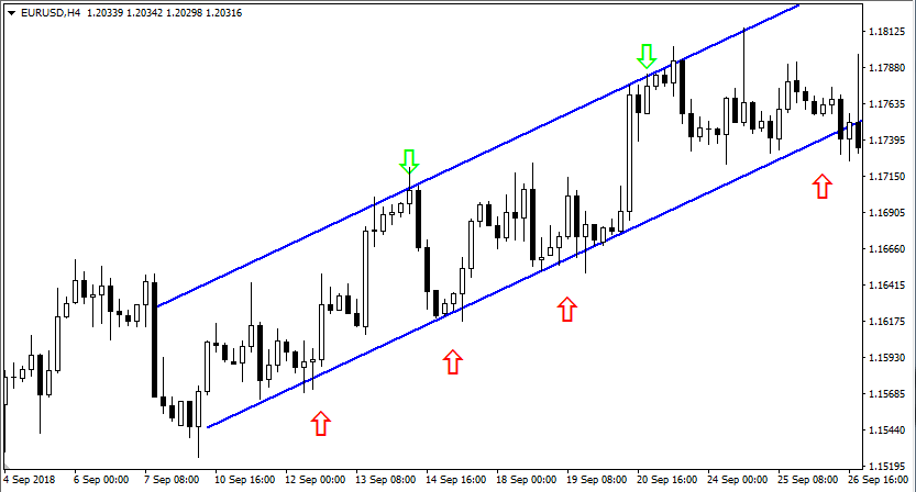 Вариант с линиями поддержки прост. Вы находите тренд и соединяете линиями его вершины и впадины. А потом ждете от этих линий коррекционных «отскоков».
