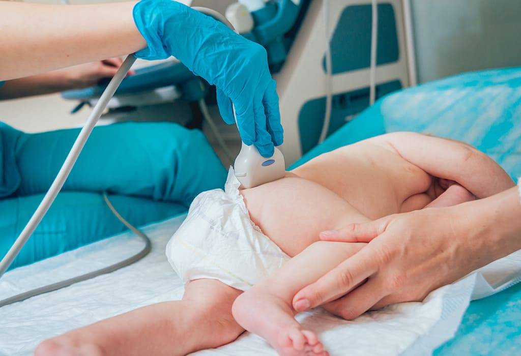 Основным методом диагностики является ультразвуковая диагностика. В 2-3-месяца врач может назначить рентген. До этого времени такую диагностику не используют из-за низкой информативности. У новорожденных большую часть сустава формирует хрящевая ткань, которая на рентгене не отображается.