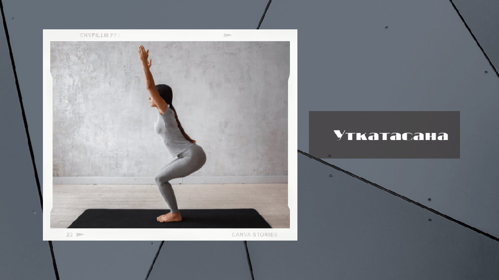 Несложная асана, напоминающая сидение на невидимом стуле. «Уткатасана» в переводе означает «поза силы», «ярости». Она укрепляет мышечный корсет, бедра, икры и лодыжки. Новичкам поначалу будет сложно держать равновесие, но со временем все получится.