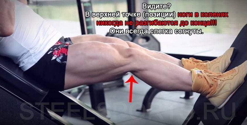 - Не разгибайте полностью ноги. Если вес более 100 килограмм, а ноги выпрямляются полностью, происходит нежелательная нагрузка на сустав, а чем больше сустав работает, тем быстрее он изнашивается.