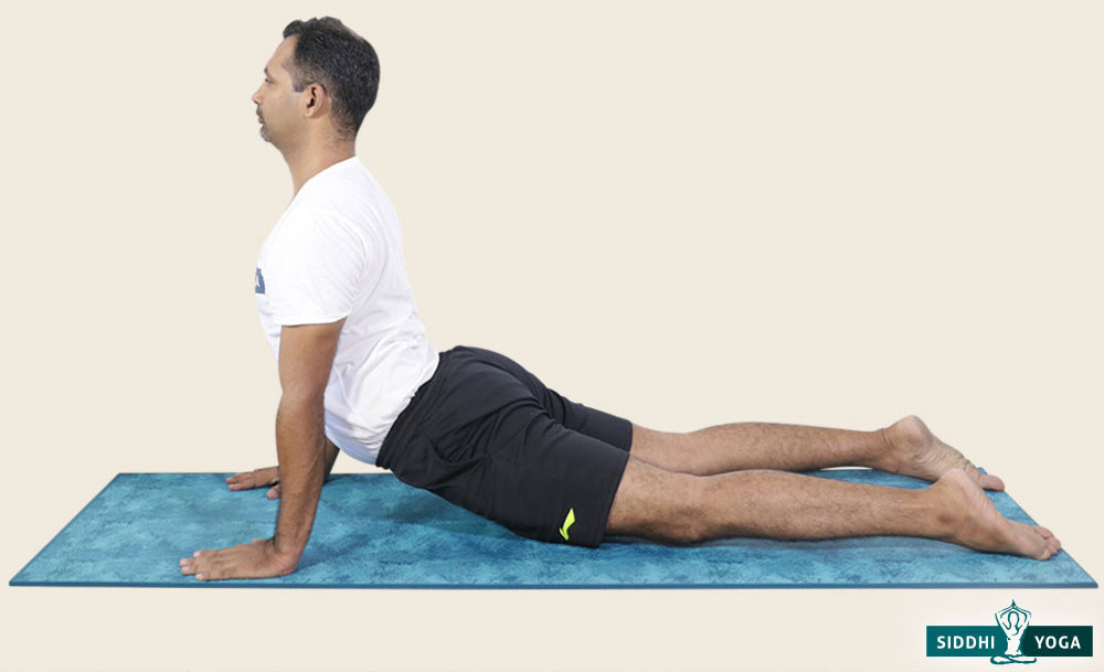 На следующем вдохе вы будете нажимать на руки и выгнуть спину, открывая сундук в направлении передней части комнаты и входя Урдхва Муха Сванасана, or Собака, обращенная вверх.