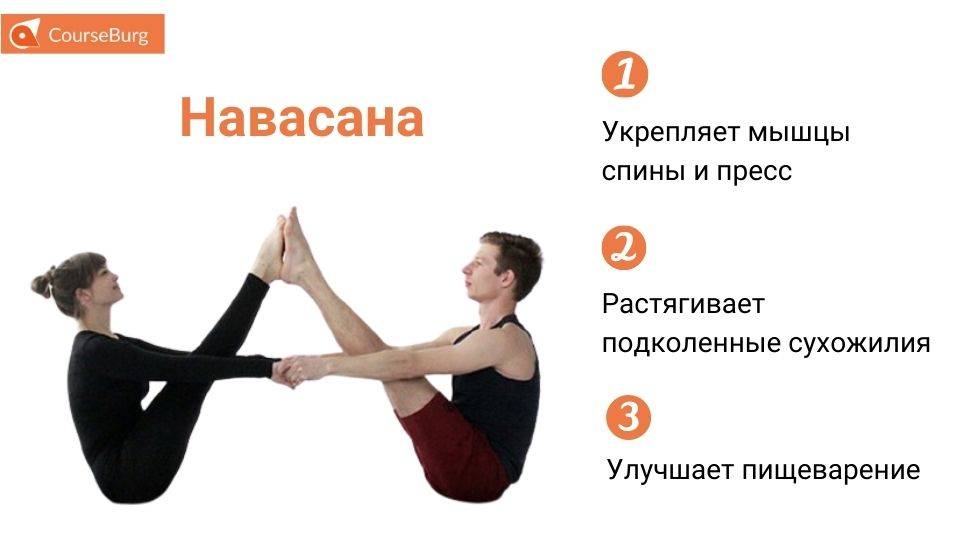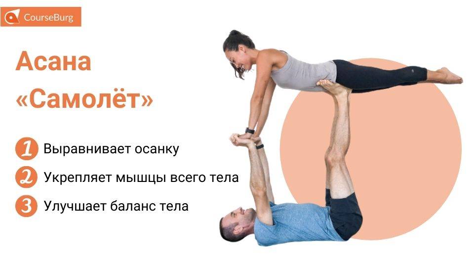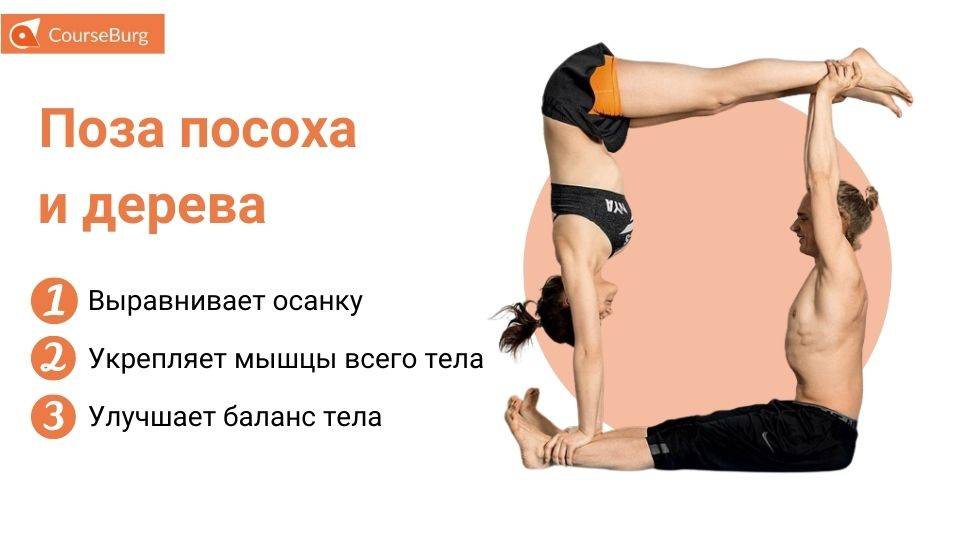 Отличная асана на равновесие, вы можете поддерживать друга, а он вас, к тому же вы укрепите ноги и улучшите кровообращение органов малого таза.