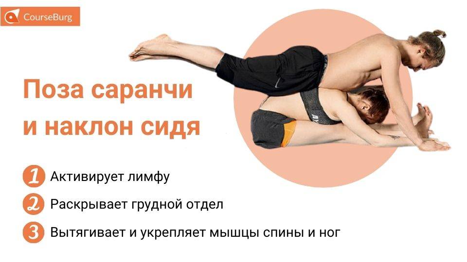 Поза укрепляет глубокие . Один из пары лежит на животе, ноги вместе.