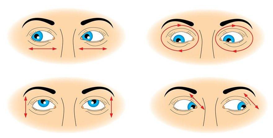 - Выполните по 18 движений глаз вправо – влево, не поднимая век;