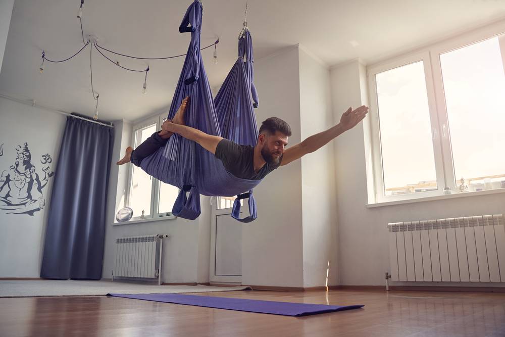 Воздействовать на любой участок тела, а также поднять настроение, помогает аэройога. Это только кажется, что ткань не выдержит, а упражнения сделать просто. Йога в гамаках помогает как снизить, так и увеличить нагрузку на мышцы, а также разгрузить позвоночник. Перевернутые асаны в воздухе не только красивы, но и имеют омолаживающий эффект. При легких формах остеохондроза, сколиоза – занятия положительно отражаются на осанке, а также тренируют вестибулярный аппарат. Этот вид йоги подходит не только женщинам, но и мужчинам.