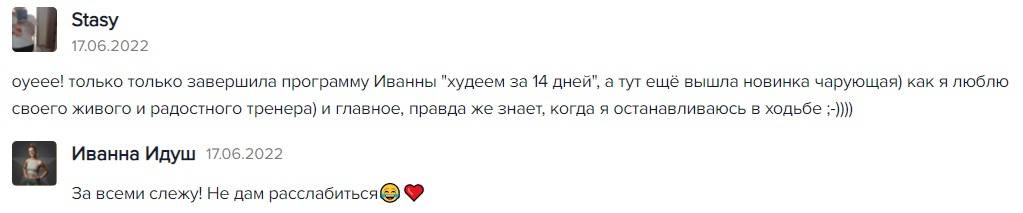 Курс занятий рассчитан на месяц – Иванна рекомендует выполнять тренировки через день. Перерыв нужен для того, чтобы мышцы ног успели восстановиться после нагрузки. Согласись, для такого дела, как избавление от целлюлита, выделить полчаса один раз в два дня можно при любой загруженности. А еще мы гарантируем, что после каждой тренировки с Иванной у тебя будет замечательное настроение.
