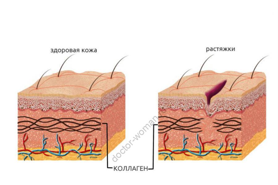 Во время беременности происходят изменения в упругой поддерживающей ткани, лежащей непосредственно под кожей. Это и является причиной растяжек. Цвет полос зависит от цвета кожи и варьируется от бледно-розового до темно-коричневого.