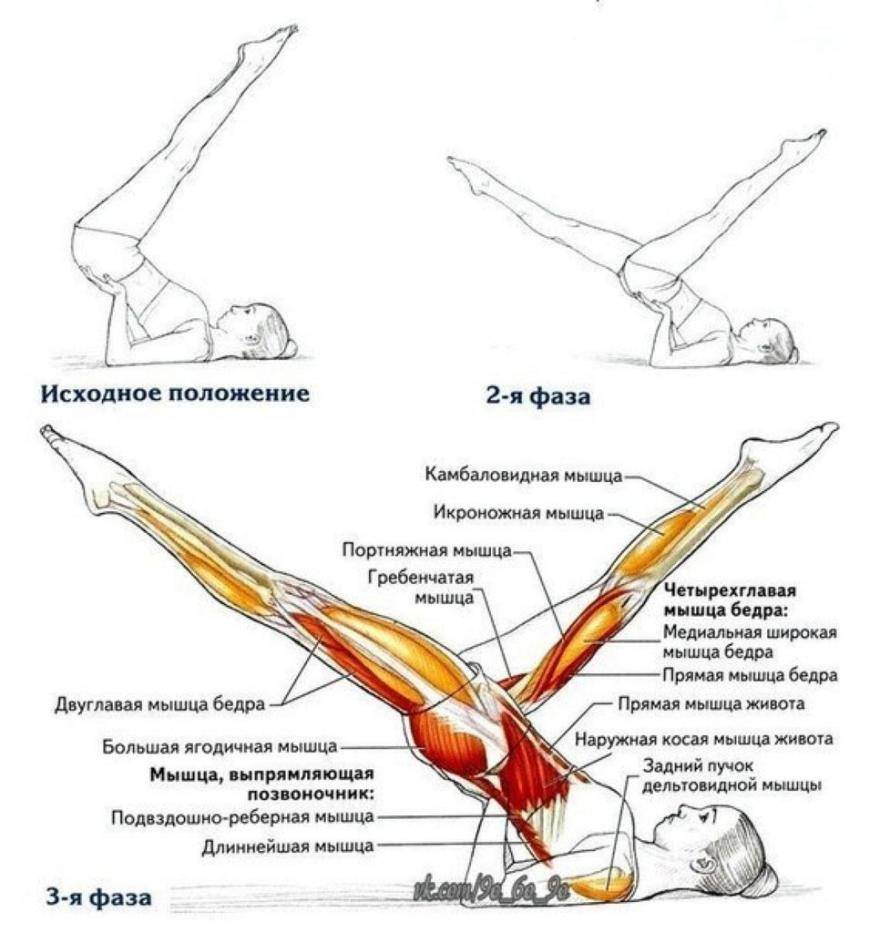 - в таком положении необходимо подтянуть ноги к себе, сгибая корпус. Для точности стоит сказать, что тело должно напоминать латинскую букву «V»;