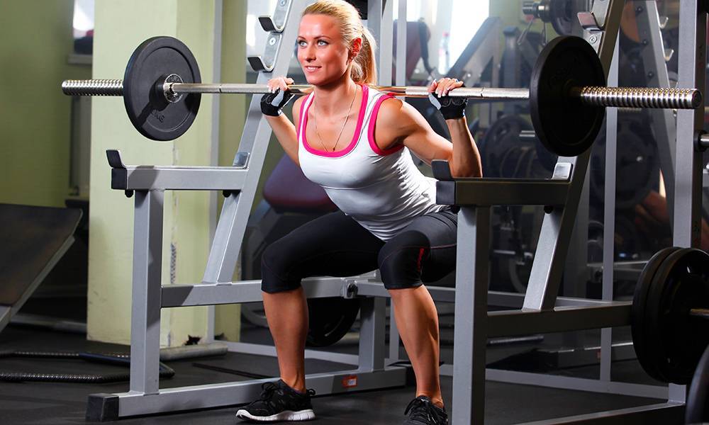 А теперь перейдем к тому, как правильно приседать со штангой для девушек – движение: