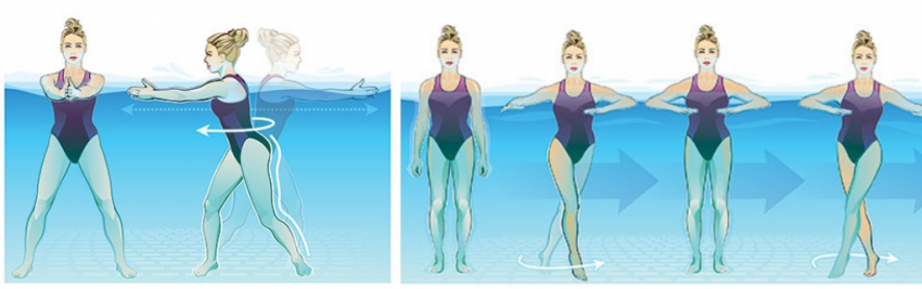 - В воду нужно зайти по грудную клетку и пошагать по дну. Упражнение следует выполнять в течение 5-ти минут. Ходить лучше всего в разные стороны, вперёд-назад. Таким образом хорошо работают мышцы ног.
