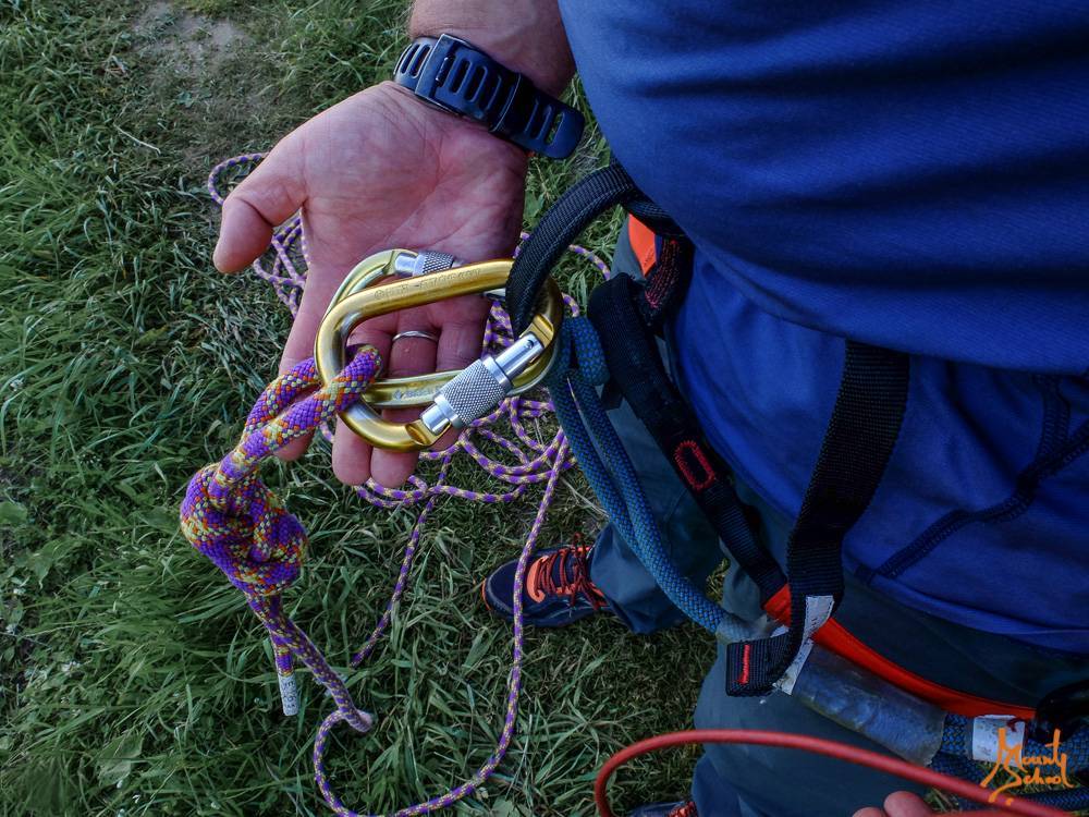 - На конце веревки завязать контрольный узел (или привязать к специальной петле), особенно если маршрут длинный и веревки может не хватить.