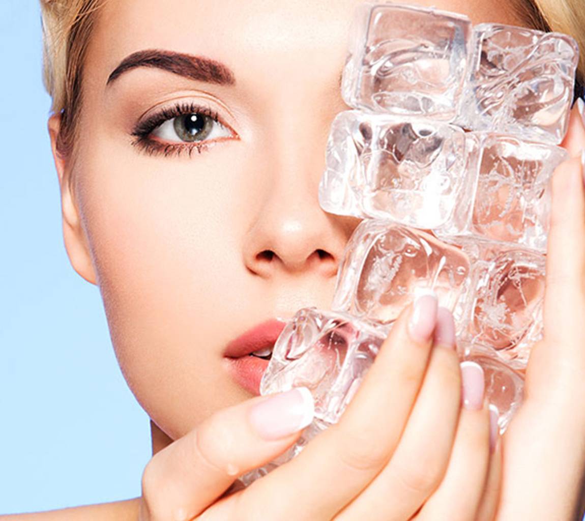 Для начала необходимо поместить на лицо чистое полотенце, смоченной горячей водой. После его остывания нужно взять кубики льда и сделать массаж. Для этого необходимо выполнить такие процедуры:
