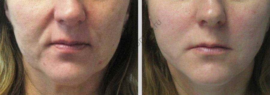 - Более глубокие носогубные складки, заметные заломы можно убрать с помощью аппаратных методов: лазерная шлифовка лица, наноперфорация представляет собой «микротравмирование» кожи, которое вызывает реакцию организма в виде усиления процессов выработки коллагена, придающего коже упругость. Таким образом, лицу возвращаются былые очертания, переход к щеке становится более плавным.