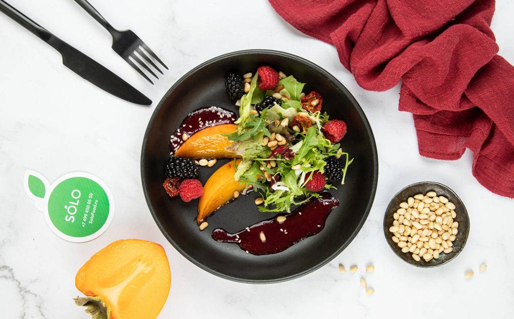 Cалат с лесными ягодами, печеной хурмой и кедровыми орешками в программе снижения веса Solo Slim