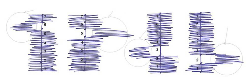 Рис. 14. Отклонения на графике в спектральном диапазоне определенных чакр свидетельствуют об искажениях в их работе. Отклонение влево от центральной линии сигнализирует о «заторможенном» режиме работы чакры и деструктивных воздействиях в данном спектре (и как следствие – возможных проблемах с органами в данной зоне), вправо – о форсированном (гипер-активном) режиме работы.