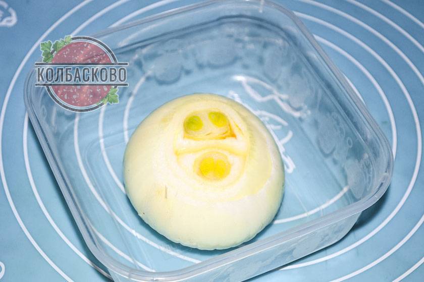 14. После приготовления пленку снимаем, а колбасу остужаем.