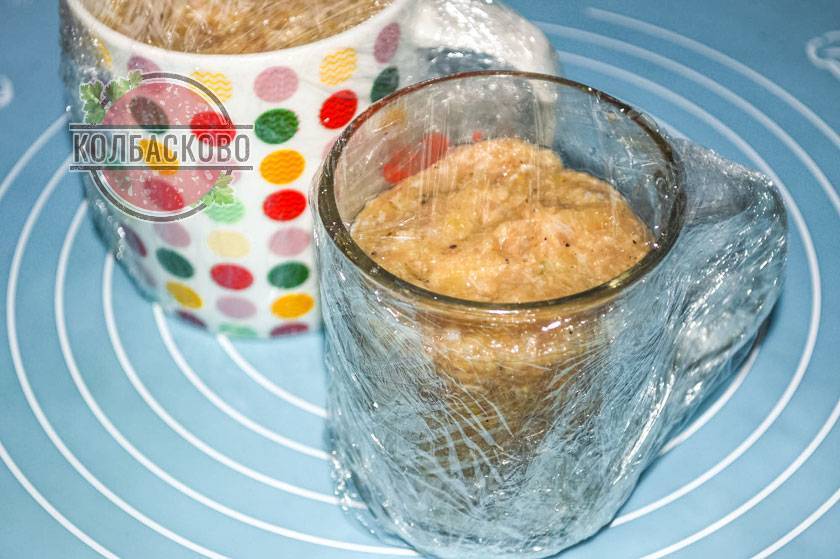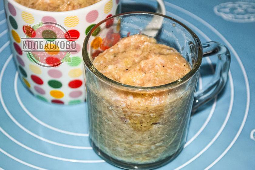 1. Готовить домашнюю колбасу в кружке можно из любого мяса. Но вкуснее и сочнее будет продукт с содержанием жира 20 -25% от общей мясной массы. Куриная колбаса в кружке получается самой мягкой и нежной.