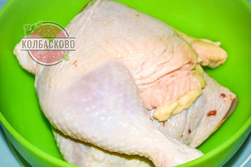 Для ее приготовления лучше использовать куриные окорочка или бедра, так как в них много жира, нежное мясо и его удобнее отделять от костей. Если стоит цель приготовить диетическую колбасу, то нужно использовать куриные грудки.