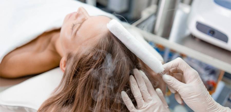 Криотерапия кожи головы также является очень эффективной процедурой, способной решить множество проблем: от выпадения волос до перхоти. Принцип действия жидкого азота на волосяные фолликулы такой же, как и на эпидермис. Запредельно низкие температуры ускоряют кровообращение, что препятствует выпадению волос и улучшает их качество.