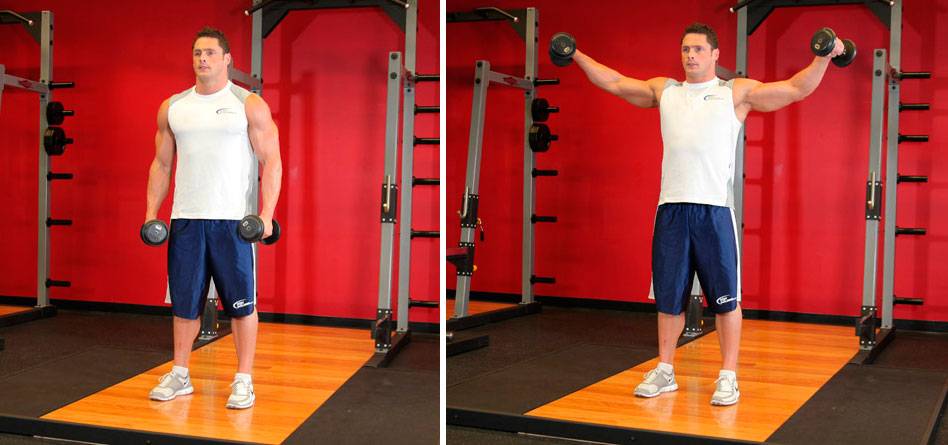 - Подъем гантелей над головой: 3 подхода по 12-15 повторений