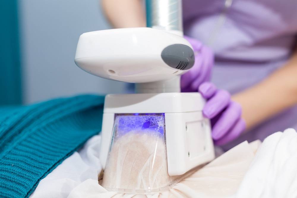 - Zeltiq Coolsculping. Аппарат американского производства не делает предварительного прогревания. Участок с жировым отложением захватывают вакуумной насадкой — манипулой, которая охлаждает кожу до +5 оС и поддерживает эту температуру на протяжении всего сеанса.