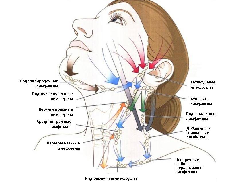 Воспаления или болезни кожи лица, болезни лимфатической системы, ЛОР-заболевания (насморк, воспаление миндалин и т. п.), плохое самочувствие.