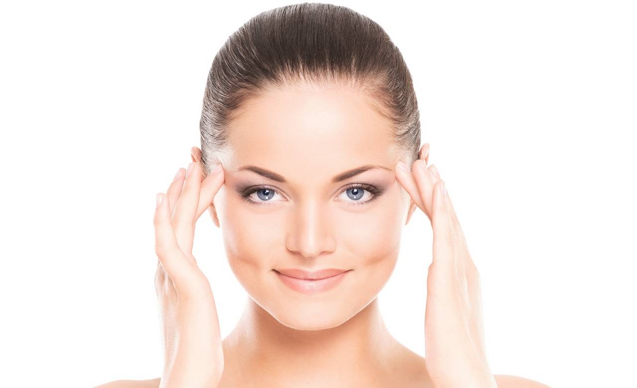 - Начните массаж с поглаживания лба, надбровных дуг и височной области легкими круговыми движениями– это активизирует венозный кровоток и поможет снять головную боль и напряжение.