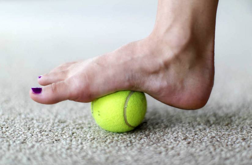 Аналогичный вариант упражнения можно делать и с мячиком для большого тенниса. Это универсальный массажер для ступней. Катайте его по очереди сначала одной ногой, потом другой, по 1–2 минуты на каждое из этих упражнений: