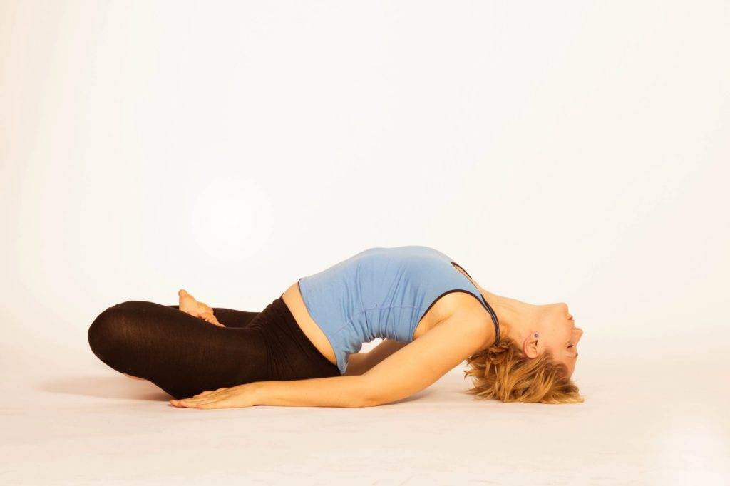 - если не получается в Падмасане прогнуться, то нужно лечь на спину, выпрямить руки за головой, тянуться ими, растягивая позвоночник;