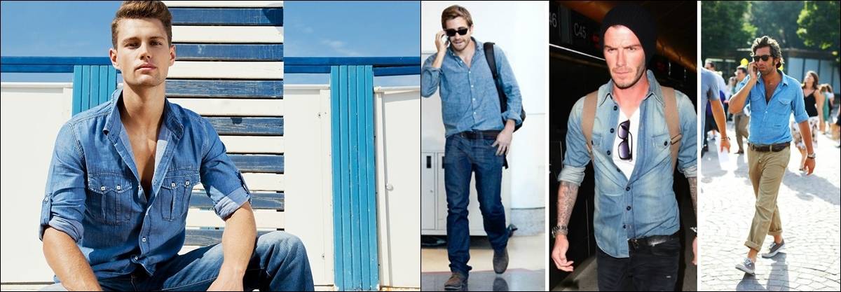 - Джинсовая рубашка красиво сочетается с джинсами только в том случае, когда она на 1-2 тона светлее, нежели нижняя часть.
