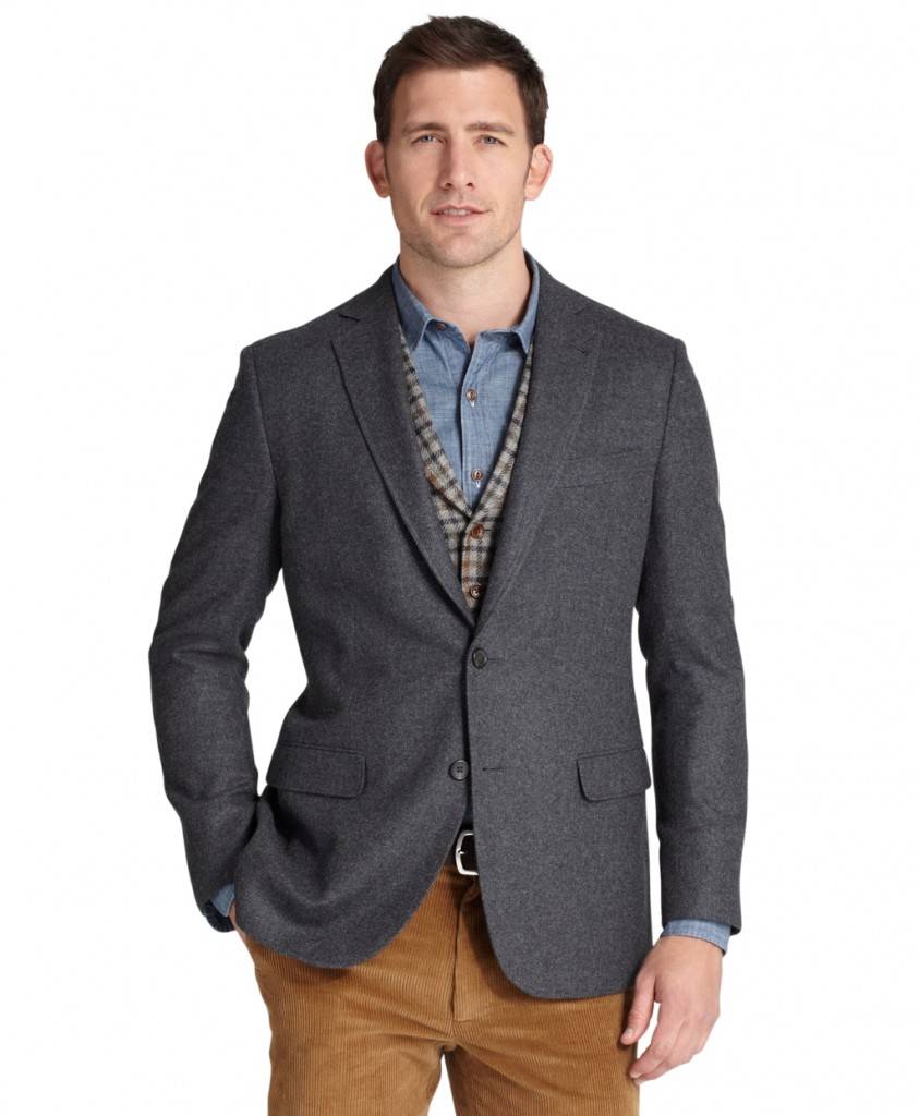 Как бы некоторые мужчины ни говорили, что они костюмов не носят, никуда не деться от его присутствия в мужском гардеробе. И поверьте, как только он у вас появится, сразу найдутся мероприятия и места, куда просто необходимо надеть костюм. Цвет его должен быть не ярким, лучше тёмно-синим или чёрным. Если вы используете костюм в повседневной жизни, то обязательно обзаведитесь ещё одним комплектом. Ткань для костюма выбирайте тщательно – твид, шерсть, вельвет.