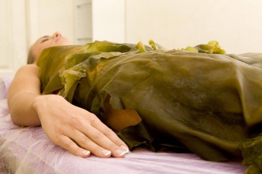 - Водорослевые обертывания. Обертывания с водорослями, как и с глиной, бывают как горячими, так и холодными. Один из рецептов холодного прост – 40 г. сухих ламинарий настоять на кипятке 30 минут и смешать с 30 мл. меда. Для увеличения эффекта добавьте пару капель масла лимона. Полученную смесь поставьте в холодильник, чтобы остыла.