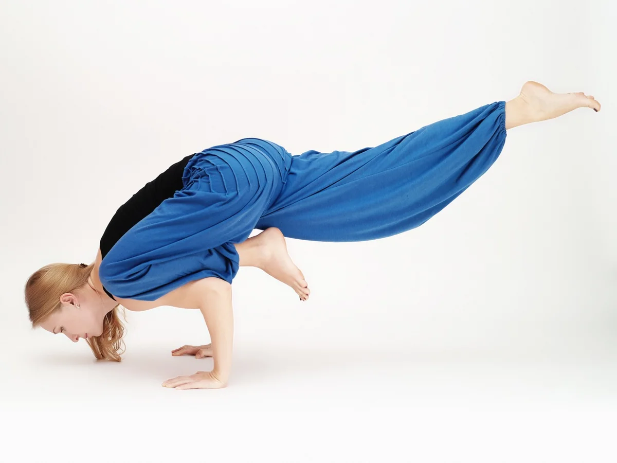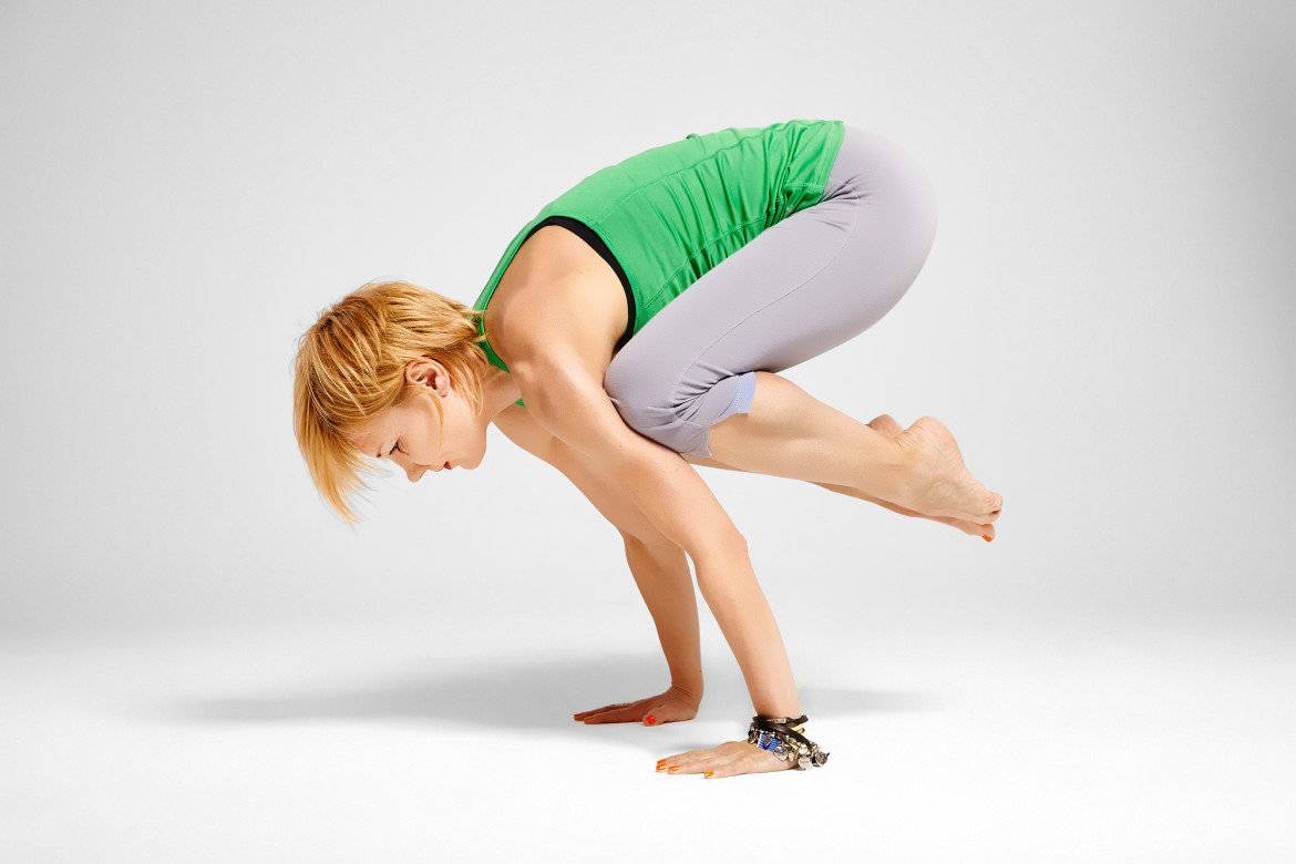 Другая вариация – Эка Пада Бакасана. Находясь в Бакасане, выпрямите ногу и тяните вверх.