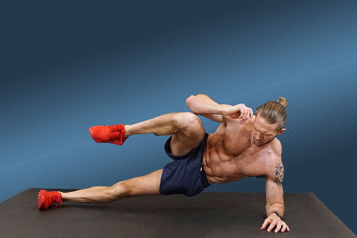 Как обычно, дьявол в мелочах — не достаточно просто подтянуть локоть к колену, нужно сделать это довольно резким движением, подразумевающим напряжение в мышцах пресса в финальной точке траектории (но без непосредственного касания локтя и колена).