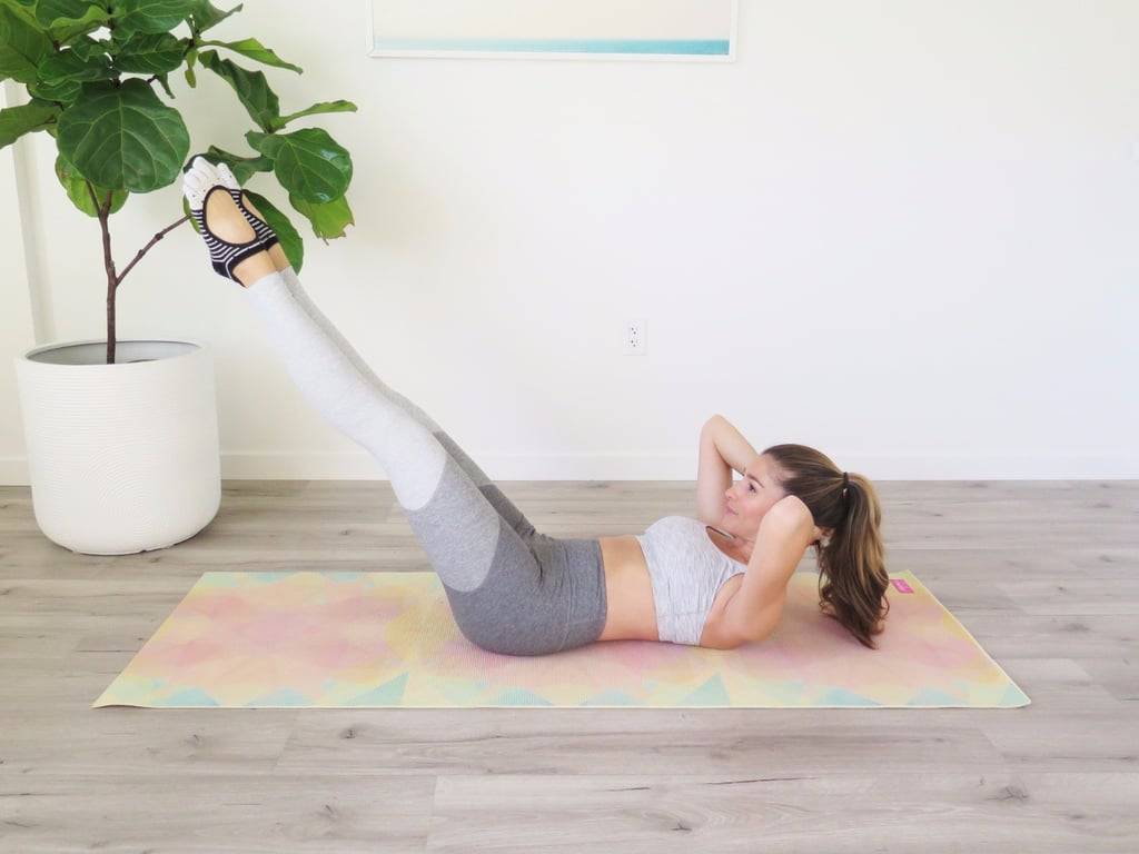 Держа поднятые вверх и согнутые в коленях ноги обращайте внимание на то, как вовлекается в работу нижняя часть пресса — а само движение выполняйте исключительно за счёт мышц живота и брюшного пресса, поддерживая их в лёгком напряжении