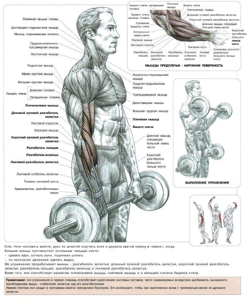 Если сгибание рук обратным хватом направлено исключительно на развитие бицепсов, то руки в запястьях остаются неподвижными
