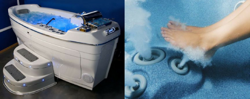 В салонных условиях используются специальные гидромассажные ванночки для ног, подключаемые к системе водоснабжения.
