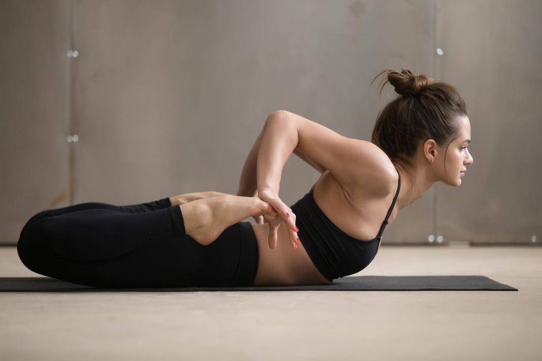 - Суптабхекасана — перевернутое упражнение лягушки в йоге. Нужно встать на колени, сведя колени и расставив стопы на ширину таза. Пальцы ног должны быть направлены назад. Далее, нужно сесть между стоп, расположив ладони поверх них. Медленно отклоните корпус назад и лягте на пол, коснитесь его макушкой. Бедра и стопы нужно потянуть вверх. Пальцы ног попытайтесь дотянуть до тазобедренного сустава.