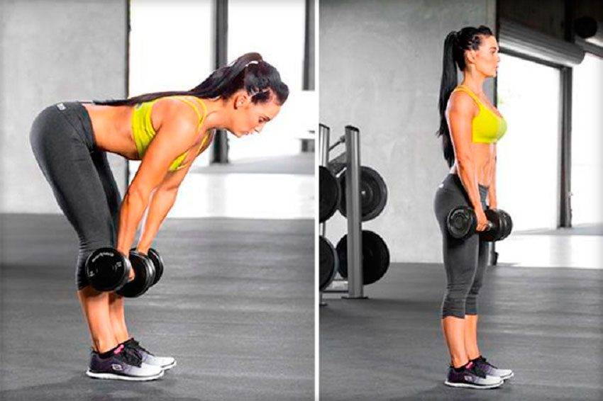 Становая тяга с гантелями также приветствуется для девушек, особенно для занятий в домашних условиях. Тяга с гантелями не так популярна, но применима: