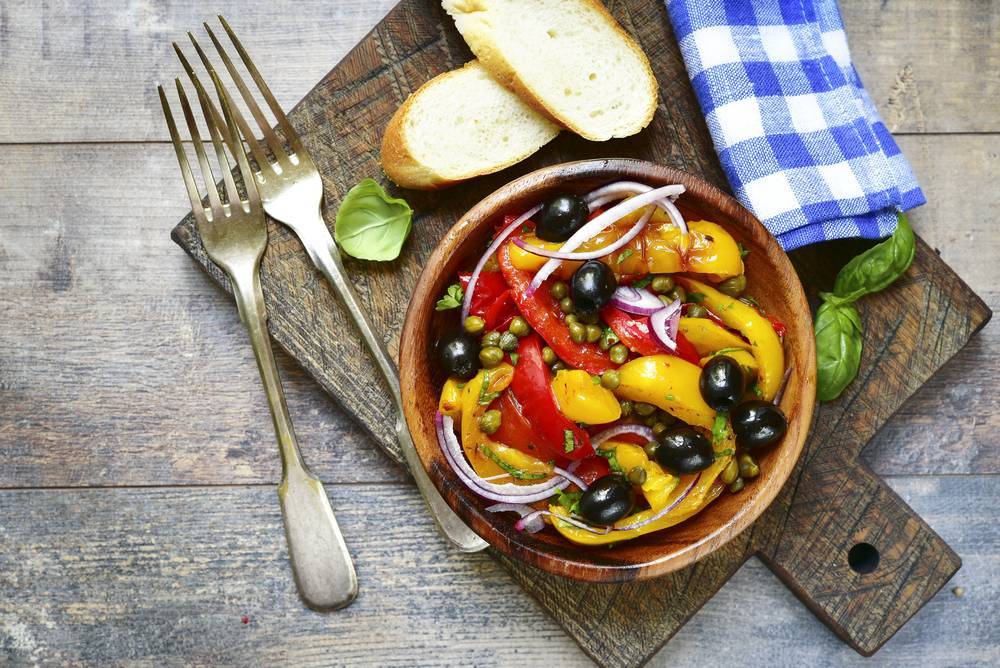 - Всю нарезку отправляем в общую миску, добавляем соль, прованские травы, оливковое масло и сок лимона, перемешиваем.