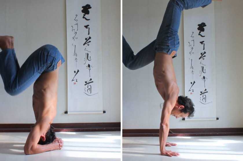 После того, как человек научится держать равновесие в перевернутом положении с согнутыми коленями, можно будет выпрямлять ноги все быстрее. Со временем исполнение данной техники будет все проще и можно будет принимать его очень быстро и без особенных проблем.