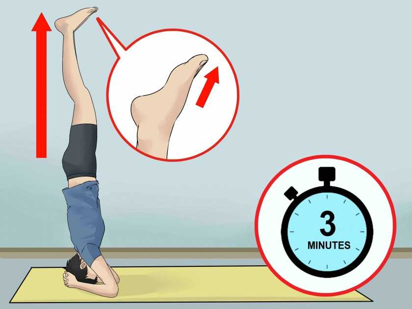 - Продолжать стоять на голове от 5 сек до 5 мин с учетом хорошего самочувствия и достаточной физической подготовки. Дышать через нос.