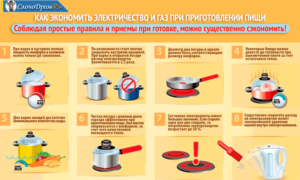 Вне зависимости от того газовая или электрическая у вас плита, есть несколько хитростей, которые помогут вам дополнительно сэкономить до 10-25% газа или электроэнергии.