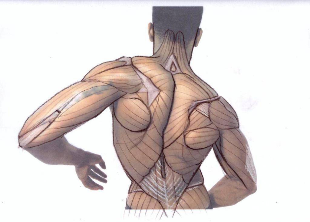 Широчайшая мышца спины занимает нижнюю часть спины. Ученые говорят, что она досталась нам от приматов, которые подтягивали свое тело на ветках, а сейчас её основная функция помогать тянуть руку назад и вращать её во внутрь. Также выступает периодически вспомогательной мышцей при дыхании.